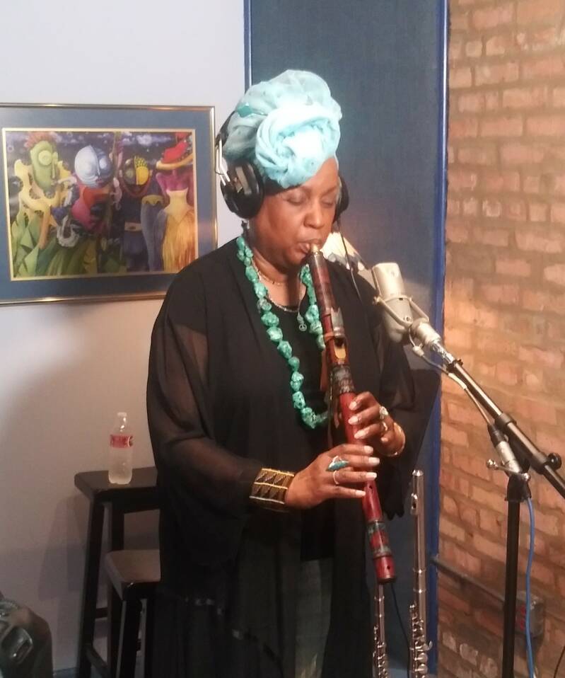 Kamilah Furqaan preforming an original piece on the Cicada Native American flute.